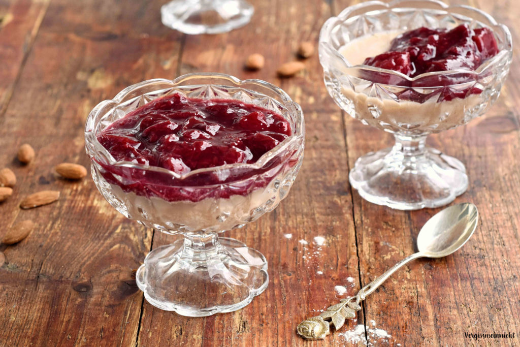 Ein veganer Nachtisch passend zu Weihnachten mein Mandel Panna Cotta mit Pflaumenkompott und Baobab. Das Mandel Panna Cotta kann man sehr gut für ein Weihnachtsmenü vorbereiten. Das Panna Cotta habe ich aus Mandelmilch und Agar-Agar hergestellt. Wenn es für dich nicht vegan sein muss, kannst du auch Gelatine verwenden.