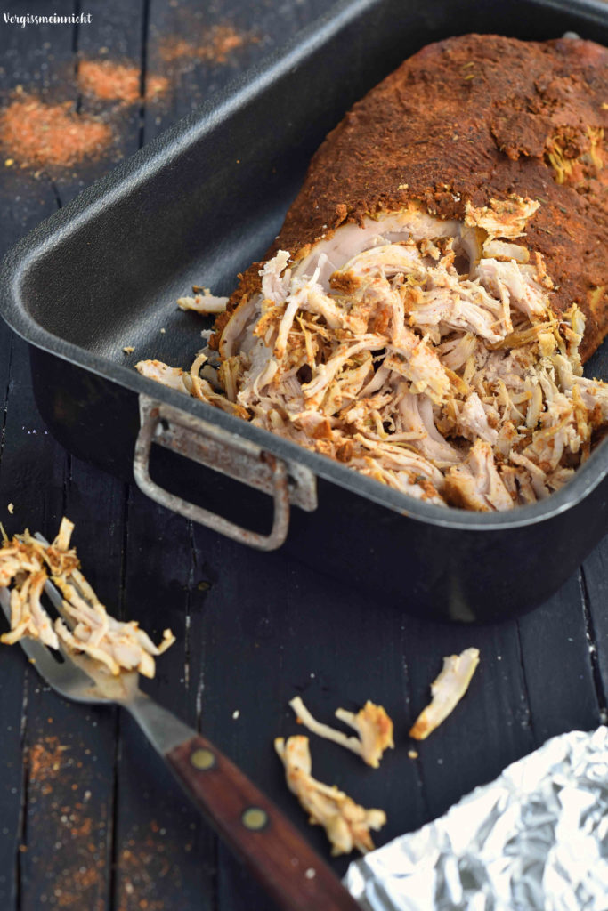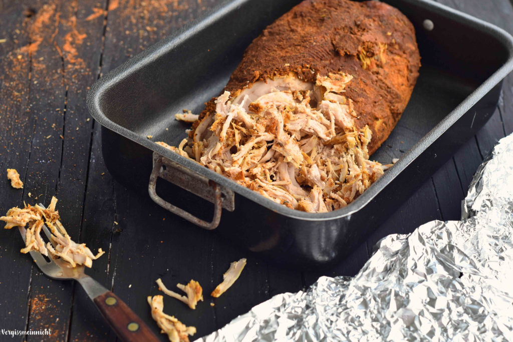Es ist etwas aufwendiger, das pulled Turkey zu zubereiten, da es mehrere Arbeitsschritte benötigt, es lohnt sich jedoch alle Male. Zuerst musst du das Fleisch salzen, ziehen lassen und wieder abwaschen. Hinterher muss das Fleisch mit Senf und Rub eingerieben werden und sollte nochmals intensiv ziehen. Anschließend kommt das Fleisch in den Ofen und muss nur nochmals nach der Garzeit ruhen. Nun ist das Fleisch schon fertig. Jedoch benötigst du am besten 24 std. dafür. Damit das Fleisch gut in dem Rub mariniert wird und den Geschmack annimmt. Aber ich sage dir, es lohnt sich so etwas von!